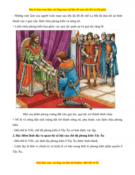 thành của 2 giai cấp: lãnh chúa phong kiến và nông nô.