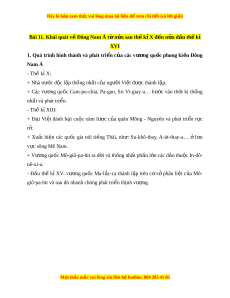 Bài 11. Khái quát v Đông Nam Á t n a sau th k X đ n n a đ u th kề ừ ử ế ỉ ế ử ầ ế ỉ