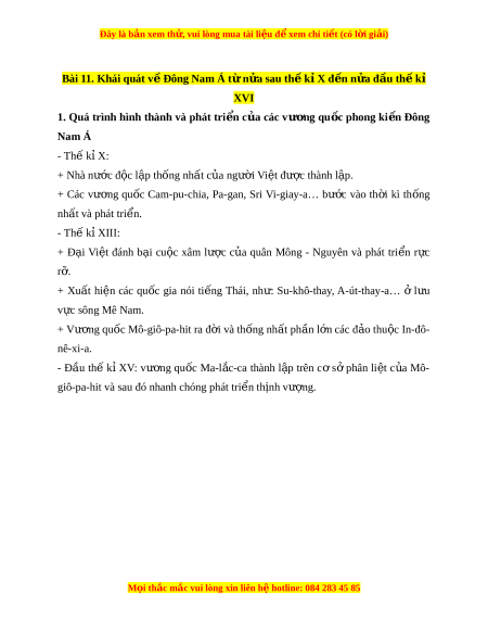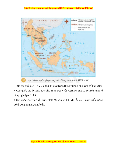 Đây là bản xem th , vu ử i lòng mua tài li u ệ đ xe ể m chi ti t (c ế ó l i ờ gi i ả ) - N a s ử au th k ế X ỉ - XVI, là th i ờ kì phát tri n t ể h nh v ị ư ng n ợ n ki ề nh t khu v ế c: ự + Các qu c ố gia ở vùng l c ụ đ a, ị nh : ư Đ i ạ Vi t ệ , Cam-pu-chia… có n n ề kinh tế nông nghiệp trù phú. + Các qu c ố gia vùng h i ả đ o, ả nh : ư Mô-giô-pa-hít; Ma-l c- ắ ca… phát tri n ể m nh ạ v t ề hư ng ơ m i ạ đư ng ờ bi n. ể M i