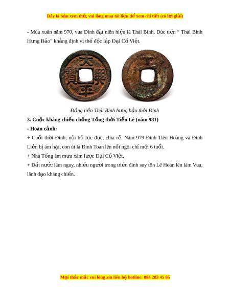 ệ là Thái Bình. Đúc ti n ề “ Thái Bình H ng ư B o” ả kh ng đ ẳ nh v ị t ị h đ ế c l ộ p ậ Đ i ạ C ồ Vi t ệ . Đồng ti n ề Thái Bình h ng b ư o t ả h i ờ Đinh 3. Cu c ộ kháng chi n ch ế ng ố T ng ố th i ờ Ti n L ề ê (năm 981) - Hoàn c nh: ả + Cu i ố th i ờ Đinh, n i ộ bộ l c ụ đ c, ụ chia r .