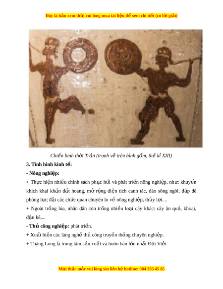 Đây là bản xem th , vu ử i lòng mua tài li u ệ đ xe ể m chi ti t (c ế ó l i ờ gi i ả ) Chi n bi ế nh th i ờ Trần (tranh v t ẽ rên bình g m ố , th k ế X ỉ III) 3. Tình hình kinh t : ế - Nông nghi p: ệ + Th c ự hi n ệ nhi u ề chính sách ph c ụ h i ồ và phát tri n ể nông nghi p, ệ nh : ư khuy n ế khích khai kh n ẩ đ t ấ hoang, mở r ng ộ di n