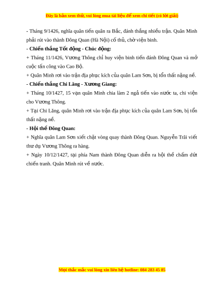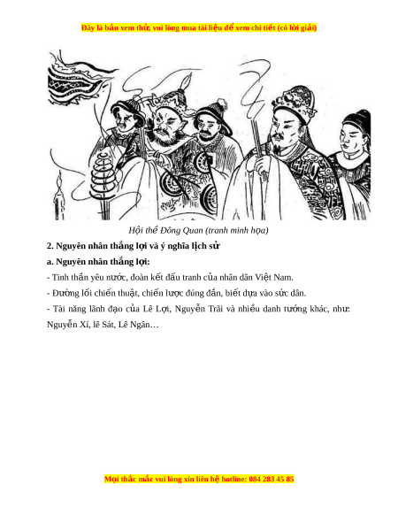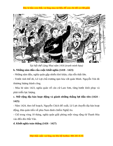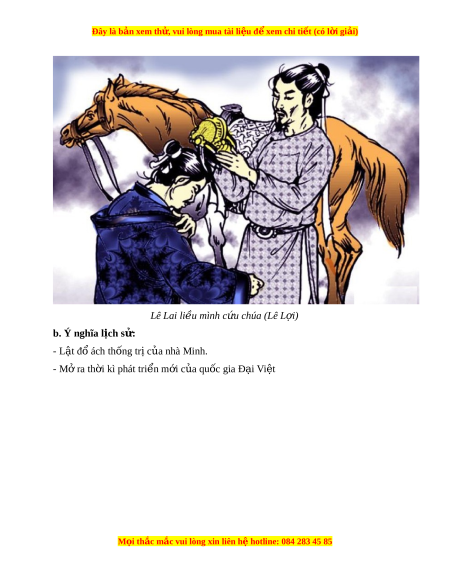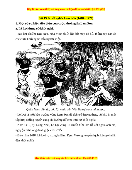 Đây là bản xem th , vu ử i lòng mua tài li u ệ đ xe ể m chi ti t (c ế ó l i ờ gi i ả ) Bài 19. Kh i ở nghĩa Lam S n ( ơ 1418 - 1427) 1. M t ộ s s ố ự ki n t ệ iêu bi u c ể a cu ủ c ộ kh i ở nghĩa Lam S n ơ a. Lê L i ợ d ng c ự ờ kh i ở nghĩa - Sau khi chi m ế Đ i ạ Ngu, Nhà Minh thi t ế l p ậ bộ máy đô h , ộ th ng ẳ tay đàn áp các cu c kh ộ i ở nghĩa c a ng ủ ư i ờ Vi t ệ .