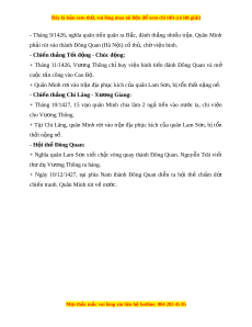 ạ quân Minh chia làm 2 ngả ti n ế vào nư c ớ ta, chi vi n ệ cho Vư ng ơ Thông. + T i ạ Chi Lăng, quân Minh r i ơ vào tr n ậ đ a ị ph c ụ kích c a ủ quân Lam S n, ơ b ịt n ổ thất n ng n ặ . ề - H i ộ th Đ ề ông Quan: + Nghĩa quân Lam S n ơ xi t ế ch t