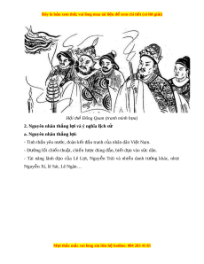 a. Nguyên nhân th ng l ắ i ợ : - Tinh th n yêu n ầ ư c, đoàn k ớ t ế đ u t ấ ranh c a nhân ủ dân Vi t ệ Nam. - Đư ng l ờ ối chi n t ế hu t ậ , chi n ế lư c đúng đ ợ n, ắ bi t ế d a vào s ự c dân. ứ - Tài năng lãnh đ o ạ c a ủ Lê L i ợ , Nguy n ễ Trãi và nhi u ề danh tư ng ớ khác, nh : ư Nguy n