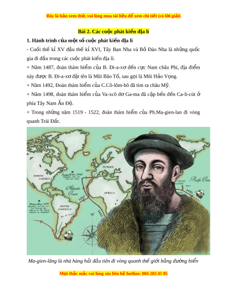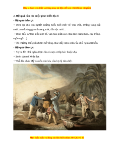Đây là bản xem th , vu ử i lòng mua tài li u ệ đ xe ể m chi ti t (c ế ó l i ờ gi i ả ) 2. H qu ệ ả c a các cu ủ c ộ phát ki n đ ế a l ị í - H qu ệ t ả ích c c ự : + Đem l i ạ cho con ngư i ờ nh ng ữ hi u ể bi t ế m i ớ về Trái Đ t ấ , nh ng ữ vùng đ t ấ m i ớ , con đư ng gi ờ ao thư ng m ơ i ớ , dân t c m ộ i ớ … + Thúc đ y ẩ sự trao đ i ổ kinh t , ế văn hóa gi a ữ các châu l c ụ (hàng hóa, cây tr ng, ồ ngôn ng …) ữ + Th t ị rư ng ờ th gi ế i ớ đư c ợ m r ở ng, t ộ húc đ y s ẩ r ự a đ i ờ c a ủ ch nghĩ ủ a t b ư n. ả - H qu ệ t ả iêu c c ự : + S r ự a đ i ờ ch nghĩ ủ a th c ự dân và n n ạ cư p bóc t ớ hu c ộ đ a ị + Buôn bán nô l da đen ệ