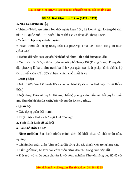 Đây là bản xem th , vu ử i lòng mua tài li u ệ đ xe ể m chi ti t (c ế ó l i ờ gi i ả ) Bài 20. Đại Vi t ệ th i ờ Lê s ( ơ 1428 - 1527) 1. Nhà Lê S t ơ hành l p ậ