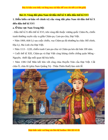 Đây là bản xem th , vu ử i lòng mua tài li u ệ đ xe ể m chi ti t (c ế ó l i ờ gi i ả ) Bài 21. Vùng đ t ấ phía Nam t đ ừ u t ầ h k ế X ỉ đ n đ ế u t ầ h k ế X ỉ VI 1. Di n ễ bi n ế cơ b n