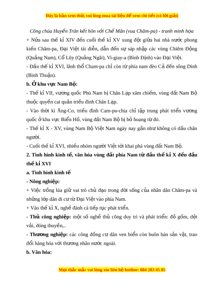 ả về chính trị c a ủ vùng đ t ấ phía Nam từ đ u ầ thế kỉ X đ n đ ế u t ầ h k ế X ỉ VI a. khu v Ở c ự Nam Trung B : ộ - Đầu th k ế ỉX đ n ế th k ế ỉXVI, trên vùng đ t ấ thu c ộ vư ng qu ơ c ố Chăm-Pa, chi n ế tranh thư ng xuyên x ờ y ả ra gi a C ữ hăm-pa, Cam-pu-chia, Đ i ạ Vi t ệ . + Năm 1069, th i ờ Lý sau cu c ộ chi n, vua ế Chăm-pa đã như ng ba ờ châu: B chí ố nh, Địa Lý, Ma Linh cho Đ i ạ Vi t ệ . + Năm 1113 - 1220, chi n t