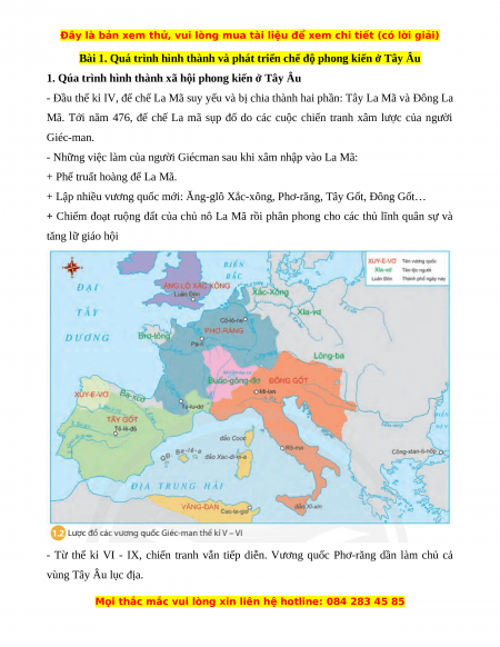 Bài 1. Quá trình hình thành và phát triển chế độ phong kiến ở Tây Âu