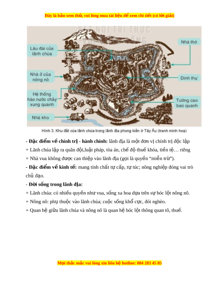 ậ pháp, tòa án, chế đ t ộ hu khóa, t ế i n t ề … r ệ iêng + Nhà vua không đư c can ợ thi p vào l ệ ãnh đ a ( ị g i ọ là quy n “m ề i n ễ tr ”) ừ . - Đ c ặ đi m ể về kinh t : ế mang tính ch t ấ t ự c p, ấ t ự túc; nông nghi p ệ đóng vai trò chủ đ o. ạ - Đ i ờ s ng t ố rong lanh đ a i : + Lãnh chúa: có nhi u quy ề n ề nh vua, s ư ống xa hoa d a ự trên s bóc l ự t ộ nông nô. + Nông nô: ph t ụ hu c ộ vào lãnh chúa; cu c ộ s ng kh ố c ổ c, đói ự nghèo. + Quan h gi ệ a