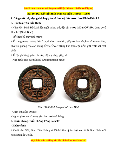 Đây là bản xem th , vu ử i lòng mua tài li u ệ đ xe ể m chi ti t (c ế ó l i ờ gi i ả ) + Nhân cơ h i ộ nhà Đinh suy y u, nhà ế T ng l ố ăm le xâm lư c Đ ợ i ạ C ồ Vi t ệ . + Đ t ấ nư c ớ lâm nguy, tư ng ớ sĩ trong tri u