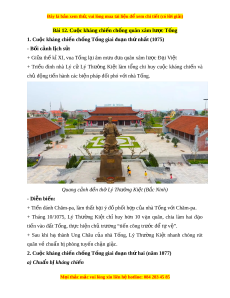 Bài 12. Cu c kháng chi ộ n ch ế ng ố quân xâm lư c ợ T ng ố 1. Cu c ộ kháng chi n ch ế ng ố T ng ố giai đo n t ạ h nh ứ t ấ (1075) - B i ố c nh l ả ch s ị : ử + Gi a ữ thế k X ỉ I, vua T ng l ố i ạ âm m u đ ư a ư quân xâm lư c Đ ợ i ạ Vi t ệ + Tri u