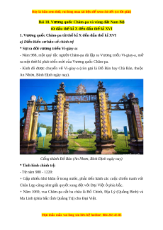 ố Chăm-pa và vùng đ t ấ Nam Bộ từ đầu th k ế X ỉ đ n đ ế u t ầ h k ế X ỉ VI 1. Vư ng qu ơ c C ố hăm-pa t t ừ h k ế X ỉ đ n đ ế u t ầ h k ế X ỉ VI a) Di n bi ễ n c ế b ơ n v ả chí ề nh trị * Sự ra đ i ờ vư ng t ơ ri u ề Vi-giay-a: - Năm 988, m t ộ quý t c ộ ngư i ờ Chăm-pa đã l p ậ ra Vư ng ơ tri u ề Vi-giay-a, mở ra m t ộ th i ờ kì phát tri n m ể i ớ c a ủ Vư ng qu ơ c C ố hăm-pa. - Kinh đô đư c ợ chuy n ể về Vi-giay-a (còn g i