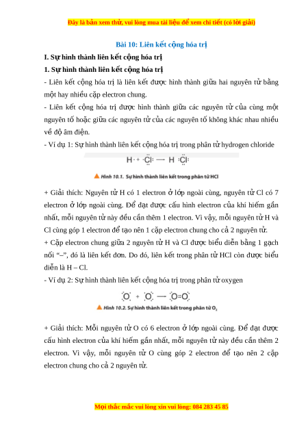 Đây là bản xem th , vu ử i lòng mua tài li u ệ đ xe ể m chi ti t ế (có l i ờ gi i ả ) Bài 10: Liên k t ế c ng hóa t ộ rị