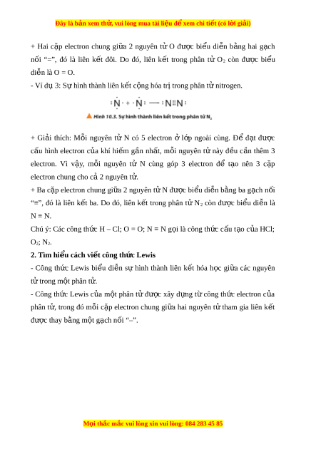 ế trong phân tử O2 còn đư c ợ bi u ể di n l ễ à O = O. - Ví dụ 3: S hì ự nh thành liên k t ế c ng hóa t ộ r t ị rong phân t ni ử trogen. + Gi i ả thích: M i