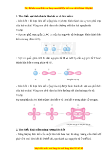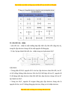 Đây là bản xem th , vu ử i lòng mua tài li u ệ đ xe ể m chi ti t ế (có l i ờ gi i ả ) II. Liên k t ế cho - nh n ậ - Liên k t ế cho – nh n ậ là m t ộ trư ng ờ h p ợ đ c ặ bi t ệ c a ủ liên k t ế c ng ộ hóa tr ,ị trong đó c p ặ electron chung ch do m ỉ t ộ nguyên t đóng góp. ử - Ví d : ụ S t ự o t ạ hành liên k t ế cho - nh n ậ trong ion hydronium H3O+ Gi i ả thích: + Trong phân tử H +