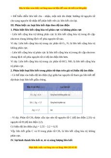 Đây là bản xem th , vu ử i lòng mua tài li u ệ đ xe ể m chi ti t (c ế ó l i ờ gi i ả ) + Để bi u ễ di n ễ liên k t ế cho - nh n, ậ m t ộ mũi tên đư c ợ hư ng ớ từ nguyên tử cho sang nguyên t nh ử n ậ đ phân bi ể t ệ v i ớ các liên k t ế còn l i ạ . III. Phân bi t ệ các lo i ạ liên k t ế d a t ự heo đ âm ộ đi n ệ 1. Phân bi t ệ liên k t ế c ng ộ hóa tr phân c ị c và khô ự ng phân c c ự - Liên k t ế c ng