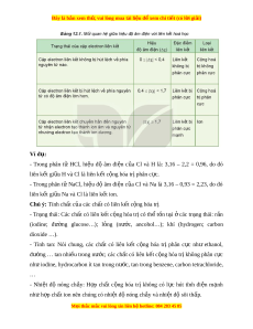 ặ electron dùng chung không bị hút l ch v ệ phí ề a nguyên t nào đ ử ư c g ợ i ọ là liên k t ế c ng hóa t ộ r không phân c ị c. ự + Liên k t ế trong phân t ử HCl có c p ặ electron dùng chung l ch ệ v ề phía nguyên tử có độ âm điện l n h ớ n ( ơ Cl) được g i ọ là liên k t ế c ng ộ hóa tr phân c ị c. ự