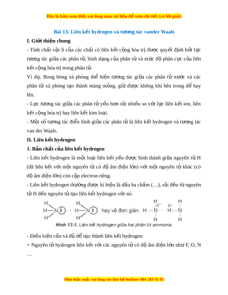 Đây là bản xem th , vu ử i lòng mua tài li u ệ đ xe ể m chi ti t (c ế ó l i ờ gi i ả ) phân tử này và m t ộ đ u ầ mang m t ộ ph n ầ đi n ệ tích dư ng ơ (δ+) c a ủ lư ng ỡ c c ự trong phân t khác t ử o ạ thành tư ng t ơ ác van der Waals. 2. Ảnh hư ng ở c a ủ tư ng
