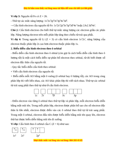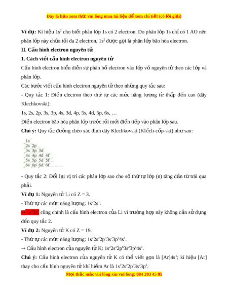 Đây là bản xem th , vu ử i lòng mua tài li u ệ đ xe ể m chi ti t (c ế ó l i ờ gi i ả ) Ví d : ụ Kí hi u ệ 1s2 cho bi t ế phân l p