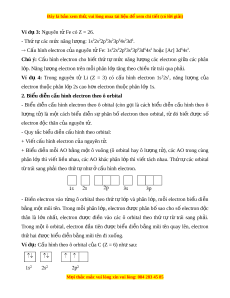 ễ sự phân bố electron theo orbital, t ừ đó bi t ế đư c ợ số electron đ c ộ thân c a nguyên t ủ . ử - Quy t c ắ bi u ể di n c ễ u hì ấ nh theo orbital: + Vi t ế c u hì ấ nh electron c a ủ nguyên t . ử + Bi u ể di n ễ m i ỗ AO b ng ằ m t