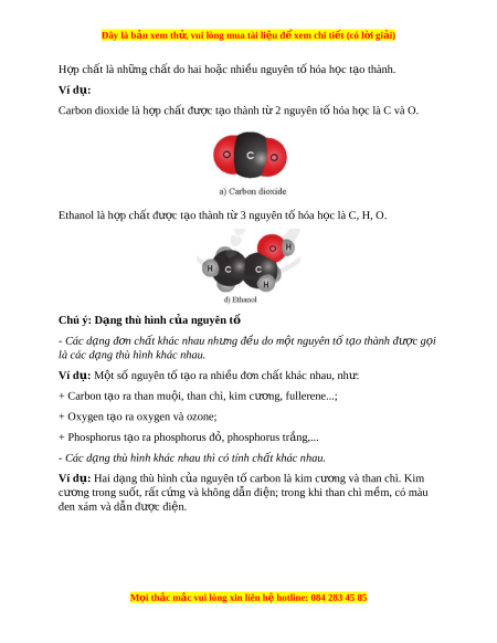 Đây là bản xem th , vu ử i lòng mua tài li u ệ đ xe ể m chi ti t (c ế ó l i ờ gi i ả ) H p ợ ch t ấ là nh ng ch ữ t ấ do hai ho c nhi ặ u nguyên ề t hóa h ố c ọ t o t ạ hành. Ví d : ụ Carbon dioxide là h p ch ợ t ấ đư c t ợ o ạ thành t 2 nguyên t ừ hóa h ố c l ọ à C và O. Ethanol là h p ch ợ t ấ đư c ợ t o t