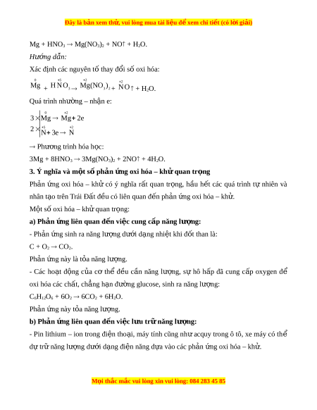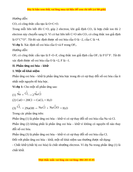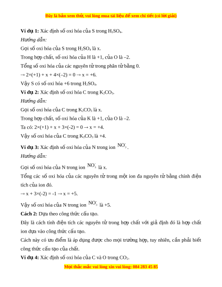 Đây là bản xem th , vu ử i lòng mua tài li u ệ đ xe ể m chi ti t (c ế ó l i ờ gi i ả ) Ví d 1 ụ : Xác đ nh s ị ố oxi hóa c a S t ủ rong H2SO4. Hư ng ớ d n ẫ : G i ọ số oxi hóa c a S t ủ rong H2SO4 là x. Trong h p
