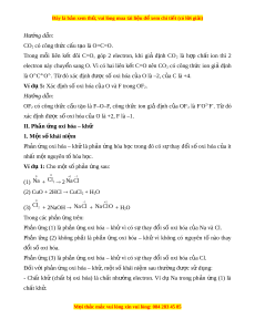 ế C=O nên CO2 có công th c ứ ion gi ả đ nh ị là O2C4+O2. T đó xác ừ đ nh đ ị ư c s ợ ố oxi hóa c a ủ O là –2, c a ủ C là +4. Ví d 5 ụ : Xác đ nh s ị ố oxi hóa c a O ủ và F trong OF2. Hư ng ớ d n ẫ : OF2 có công th c ứ c u ấ t o ạ là F–O–F, công th c ứ ion gi ả đ nh ị c a