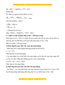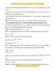 ờ electron. Ví dụ quá trình Na như ng ờ electron trong ph n ả ng ( ứ 1). - Quá trình khử (sự kh ) ử là quá trình nh n ậ electron. Ví d ụ quá trình Cl2 nh n ậ electron trong ph n ả ng ( ứ 1). Chú ý: Trong ph n ả ng ( ứ 3) ở ví dụ 1, Cl2 v a ừ là ch t ấ oxi hóa, v a l ừ à ch t ấ kh . ử 2. Cân bằng ph n ả ng oxi ứ hóa – kh t ử heo phư ng phá ơ p thăng b ng el ằ ectron. Ta có thể cân b ng ằ ph n ả ng