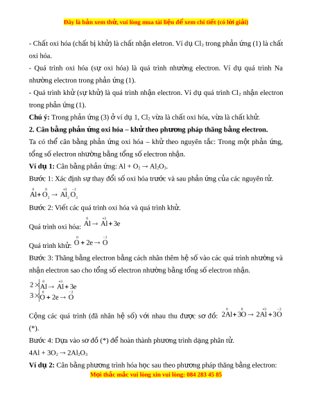 Đây là bản xem th , vu ử i lòng mua tài li u ệ đ xe ể m chi ti t (c ế ó l i ờ gi i ả ) - Ch t ấ oxi hóa (ch t ấ bị kh ) ử là ch t ấ nh n ậ eletron. Ví d ụ Cl2 trong ph n ả ng ứ (1) là ch t ấ oxi hóa.