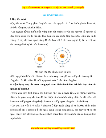 Đây là bản xem th , vu ử i lòng mua tài li u ệ đ xe ể m chi ti t (c ế ó l i ờ gi i ả ) Bài 9: Quy t c oct ắ et I. Quy t c oct ắ et - Quy t c ắ octet: Trong ph n ả ng ứ hóa h c,