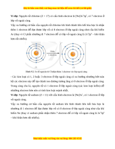 ử chlorine khi hình thành liên k t ế hóa h c ọ là nh n ậ thêm 1 electron để đ t ạ đư c ợ l p ớ vỏ có 8 electron ở l p ớ ngoài cùng nh ư c a ủ khí hi m ế Ar (thay vì Cl ph i ả như ng ờ đi 7 electron đ ể có l p ớ v