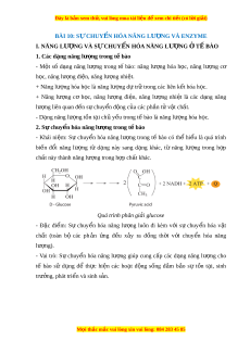 Đây là bản xem th , vu ử i lòng mua tài li u ệ đ xe ể m chi ti t ế (có l i ờ gi i ả ) BÀI 10: S C Ự HUY N Ể HÓA NĂNG LƯ N Ợ G VÀ ENZYME I. NĂNG LƯ N Ợ G VÀ S C Ự HUY N Ể HÓA NĂNG LƯ N Ợ G Ở T B Ế ÀO 1. Các d ng năng l ạ ư ng t ợ rong t bào ế - M t ô sô d ng a năng lư ng