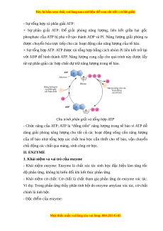 Đây là bản xem th , vu ử i lòng mua tài li u ệ đ xe ể m chi ti t ế (có l i ờ gi i ả ) - S t ự ổng h p và phân gi ợ i a ATP: + S ự phân gi i a ATP: Đ ể gi i a phóng năng lư ng, ợ liên k t ế gi a ữ hai g c ô phosphate c a ủ ATP b iphá v ơ t o