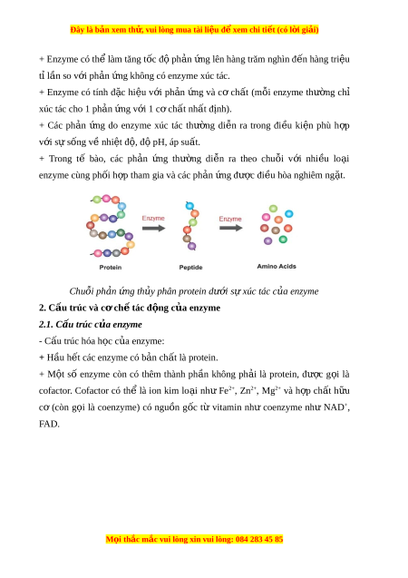 Đây là bản xem th , vu ử i lòng mua tài li u ệ đ xe ể m chi ti t (c ế ó l i ờ gi i ả ) + Enzyme có th l ể àm tăng t c đ ô ph ô n a ng l ư