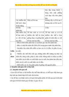 cuối) và phân chia tế phân II (kì đ u ầ II, kì bào chất. gi a ữ II, kì sau II, kì cu i ố II). Không có hi n ê tư ng ợ Có hi n ê tư ng ợ ti p ế h p ợ Hiên tư ng ợ ti p ế h p ợ và trao đ i ổ và có th ể trao đ i ổ chéo ti p h ế p ợ chéo. gi a ữ cac chromatid c a ủ và trao đ i ổ cac nhi m ễ s c ắ thể chéo tư ng đ ơ ồng kì ở đ u I ầ . S p ắ x p ế - Ơ kì gi a, ữ cac NST kép - Ơ kì gi a ữ I, cac nhi m ễ nhi m ễ s c ắ thể t p â trung thành 1 hàng s c ắ th ể kép trong c p ặ trên thoi phân trên m t ặ ph ng ă xích đ o a nhi m ễ s c ắ th ể t ư ng ơ bào c a ủ thoi phân bào. đồng t p â trung thành hai hàng trên m t ặ ph ng ă xích đ o a c a ủ thoi phân bào. - Ơ kì sau II, cac NST M i ọ thắc m c