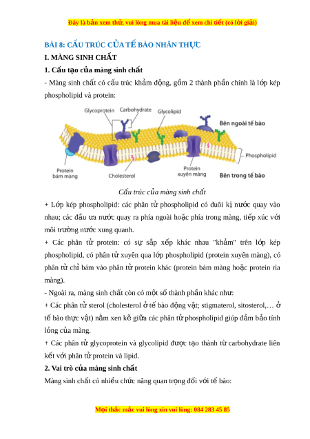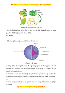 Đây là bản xem th , vu ử i lòng mua tài li u ệ đ xe ể m chi ti t (c ế ó l i ờ gi i ả ) Cấu t o ạ c a t ủ hành t bào t ế h c v ự t ậ - Vai tro: Thành t bào l ế àm nhi m ệ v b u o v ả , t ệ o hi a nh d ng a đ c ặ tr ng và t ư ham gia đi u ch ê ỉnh lư ng ơ nư c đi ơ vào t bào. ế III. NHÂN - Cấu t o: a gôm màng nhân, ch t ấ nhân và nhân con. Cấu trúc c a nhân ủ