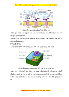 ế các phân tử protein như collagen, proteoglycan,… - Vai tro: Ch t ấ n n ê ngo i a bào giúp các t bào ế liên k t ế v i ơ nhau và tham gia quá trinh truy n t ê hông tin. 2. Thành t bào ế - Có t ơ bào t ế h c ự v t â và n m ấ , bao ph bên ngoài ủ màng sinh ch t ấ . Vị trí c a t ủ hành t bào t ế rong c u t ấ rúc t bào t ế h c v ự t ậ - C u ấ t o: a Thành tế bào th c ự v t â đư c ơ c u ấ t o a chủ y u ế tư các chu i ỗ