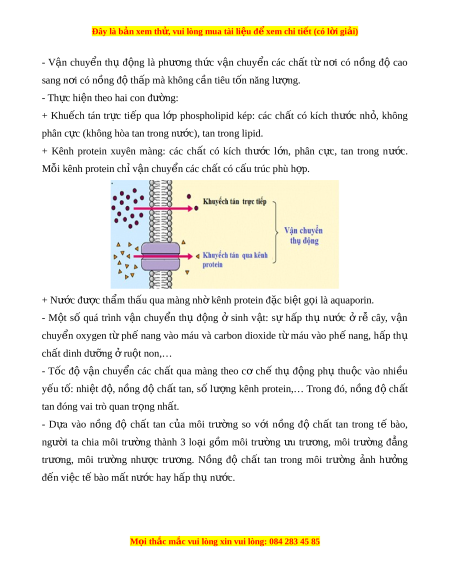 Đây là bản xem th , vu ử i lòng mua tài li u ệ đ xe ể m chi ti t (c ế ó l i ờ gi i ả ) - V n ậ chuy n ể thụ đ ng ộ là phư ng ơ th c ứ v n ậ chuy n ể các ch t ấ từ n i ơ có n ng ồ độ cao sang n i ơ có nồng đ t ộ h p m ấ à không c n t ầ iêu t n năng ố lư ng. ợ - Th c hi ự n t ệ heo hai con đư ng: ờ + Khu ch ế tán tr c ự ti p ế qua l p