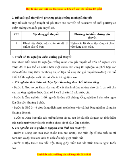 Đây là bản xem th , vu ử i lòng mua tài li u ệ đ xe ể m chi ti t (c ế ó l i ờ gi i ả ) 2. Đ xu ề ất giả thuy t ế và phư ng phá ơ p ch ng m ứ inh gi t ả huy t ế Hãy đ xu ề t ấ các gi t ả huy t ế đ gi ể i ả thích cho các v n đ ấ đã ề nêu và đ xu ề t ấ phư ng án ơ ki m ể ch ng ứ cho mỗi giả thuy t ế đó. STT N i ộ dung gi t ả huy t ế Phư ng ơ án ki m ể ch ng gi ứ ả thuy t ế 1 Khoai tây đư c ợ n u