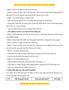 ể vi, lamen, lam kính, kim mũi mác, kim mũi nh n, ọ ng nh ố gi ỏ t ọ , gi y t ấ h m ấ , đĩa petri, dao nh , ỏ ng nghi ố m ệ , k p. ẹ - Hóa ch t ấ : Nư c c ớ ất, dung d ch xanh m ị ethylene 1%, dung d ch N ị aCl 0,65% và 2%. - Mẫu vật: C khoai ủ tây, củ hành tím, ch s ế ng. ố II. CÁCH TI N Ế HÀNH 1. Quan sát đ t ể r i ả nghi m ệ Từ nh ng ữ tình hu ng