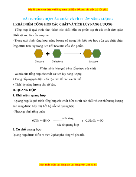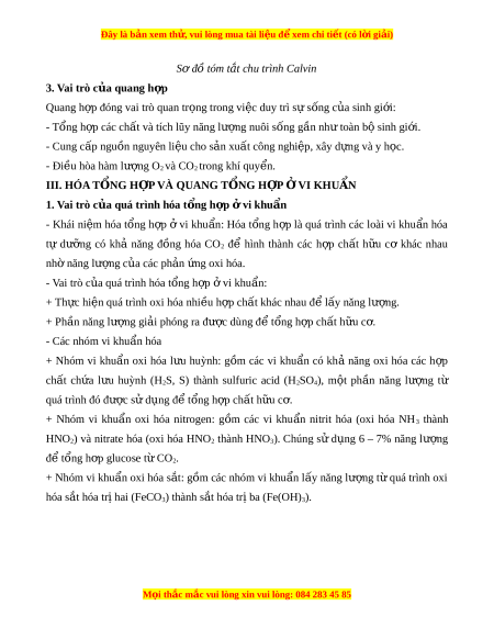 Đây là bản xem th , vu ử i lòng mua tài li u ệ đ xe ể m chi ti t (c ế ó l i ờ gi i ả ) Sơ đồ tóm t t ắ chu trình Calvin 3. Vai trò c a q ủ uang h p ợ Quang h p đóng vai ợ trò quan tr ng t ọ rong vi c duy t ệ rì s s ự ng c ố a s ủ inh gi i ớ : - Tổng h p các ch ợ