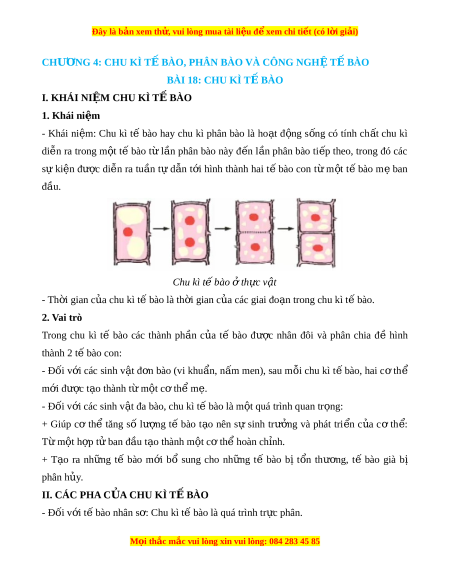 Đây là bản xem th , vu ử i lòng mua tài li u ệ đ xe ể m chi ti t (c ế ó l i ờ gi i ả ) - Đối v i ớ tế bào nhân th c: ự Chu kì tế bào g m ồ 2 giai đo n ạ là (1) giai đo n ạ chu n ẩ bị
