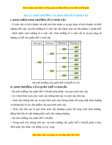Đây là bản xem th , vu ử i lòng mua tài li u ệ đ xe ể m chi ti t (c ế ó l i ờ gi i ả ) BÀI 25: SINH TRƯ N Ở G VÀ SINH S N Ả Ở VI SINH V T Ậ I. KHÁI NI M Ệ SINH TRƯ N Ở G Ở VI SINH V T Ậ - Vi sinh v t â co kich thư c ơ r t â nh o nên kho nh n â ra s ư gia tăng v ê kich thư c ơ va kh i ô lư ng, ơ b i ơ v y â , s s ư inh trư ng ơ vi ơ sinh v t â c n đ â ư c ơ xem xet trên ph m a vi qu n t â h . ê - Khai ni m ê sinh trư ng ơ ơ vi sinh v t â : Sinh trư ng ơ ơ vi sinh v t â la sư gia tăng sô lư ng ơ ca th c ê a ủ qu n t â h vi ê sinh v t â . S s ư inh trư ng c ơ a u quân th vi ê khu n E â .coli II. SINH TRƯ N Ở G C A Ủ QU N Ầ TH Ể VI KHU N Ẩ - S s ư inh trư ng c ơ a ủ qu n t â h vi ê khu n p â h t ụ hu c ộ vao qua trình nuôi c y â . - Co 2 hình th c