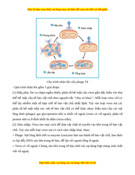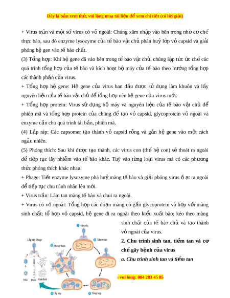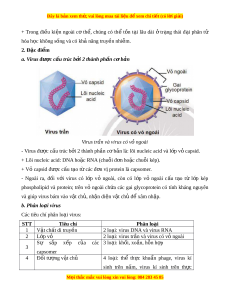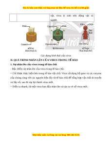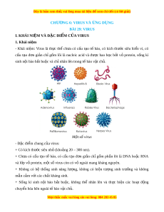 Đây là bản xem th , vu ử i lòng mua tài li u ệ đ xe ể m chi ti t (c ế ó l i ờ gi i ả ) CHƯ N Ơ G 6: VIRUS VÀ N Ứ G D N Ụ G BÀI 29: VIRUS I. KHÁI NI M Ệ VÀ Đ C Ặ ĐI M Ể C A Ủ VIRUS 1. Khái ni m ệ - Khái ni m ệ : Virus là th c ự thể ch a ư có c u ấ t o ạ t ế bào, có kích thư c ớ siêu hi n ể vi, có cấu t o ạ đ n ơ gi n ả chỉ g m