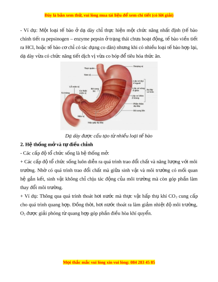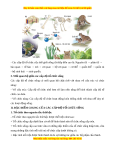 ơ chỉ có tác d ng co dãn) ụ nh ng khi ư có nhi u ề lo i ạ t bào h ế p l ợ i ạ , dạ dày v a có ch ừ c ứ năng ti t ế d ch v ị ị v a co bóp đ ừ t ể iêu hóa th c ứ ăn. Dạ dày đư c ợ c u t ấ o t ạ nhi ừ u l ề o i ạ tế bào 2. H t ệ h ng m ố và t ở đi ự u ch ề nh ỉ - Các c p đ ấ t ộ ổ ch c ứ sống là h t ệ h ng m ố : ở + Các c p ấ đ ộ t ổ ch c ứ s ng ố luôn di n ễ ra quá trình trao đ i ổ ch t ấ và năng lư ng ợ v i ớ môi trư ng. ờ