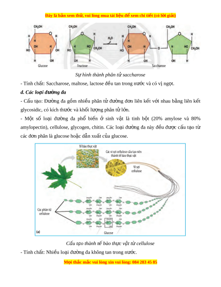 Đây là bản xem th , vu ử i lòng mua tài li u ệ đ xe ể m chi ti t (c ế ó l i ờ gi i ả ) S hì ự nh thành phân t s ử accharose - Tính ch t