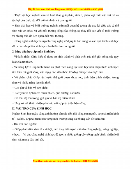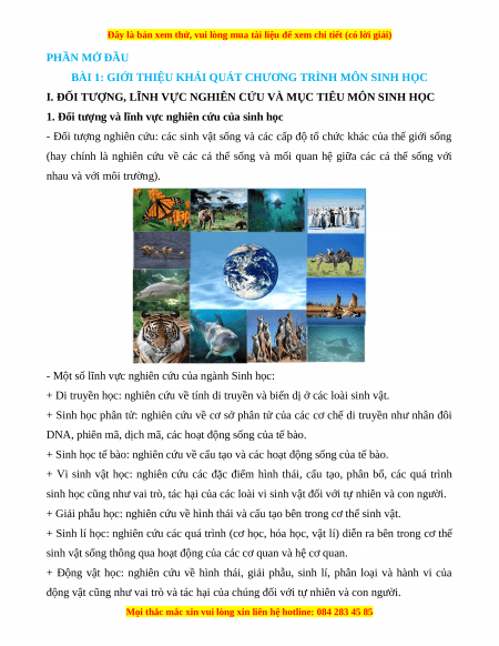I. ĐỐI TƯỢNG, LĨNH VỰC NGHIÊN CỨU VÀ MỤC TIÊU MÔN SINH HỌC