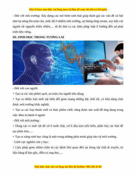 III. SINH HỌC TRONG TƯƠNG LAI - Đối với con người: