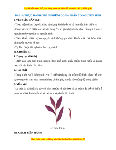 Ự HÀNH: THÍ NGHI M C Ệ O VÀ PH N Ả CO NGUYÊN SINH I. YÊU CÂU CÂN ĐAT - Th c hi ự n t ệ hành th o kĩ ạ năng s d ử ng kí ụ nh hi n vi ể và làm tiêu b n ả hi n vi ể . - Quan sát và v đ ẽ ư c các ợ t bào đang ế các ở giai đo n khác ạ nhau c a quá ủ trình co nguyên sinh và ph n ả co nguyên sinh. - Đi u ề khi n ể đư c